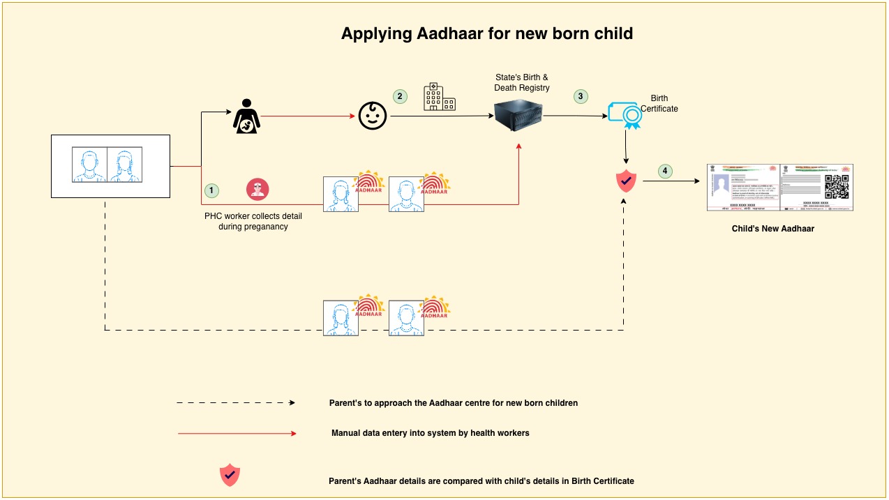 While applying for the new number, parents details are cross verified with the Aadhaar mentioned during the childbirth. If all goes well, you’ll get a new Aadhaar number for your kid.